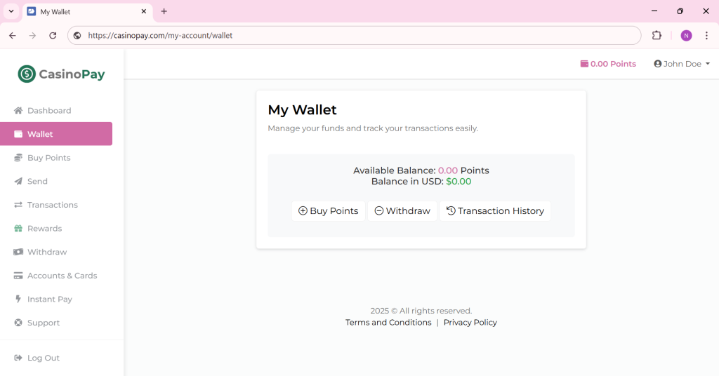 The player wallet is the central hub for all funds. Instantly view real-time balances and see all available points in one secure and convenient location.