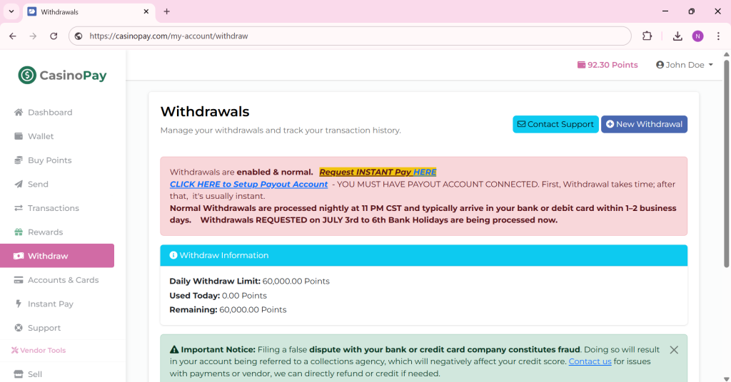 Players can use the “Buy Points” feature to deposit funds instantly and play right away. Withdrawals are equally simple, allowing users to securely cash out winnings anytime.